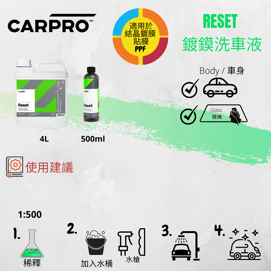 不包含。Reset 的配方專為清潔塗裝表面而設計,沒有添加蠟或其他保護性成分。這樣可以確保不會影響陶瓷鍍膜的性能,並使塗裝表面保持原有的保護和光澤。