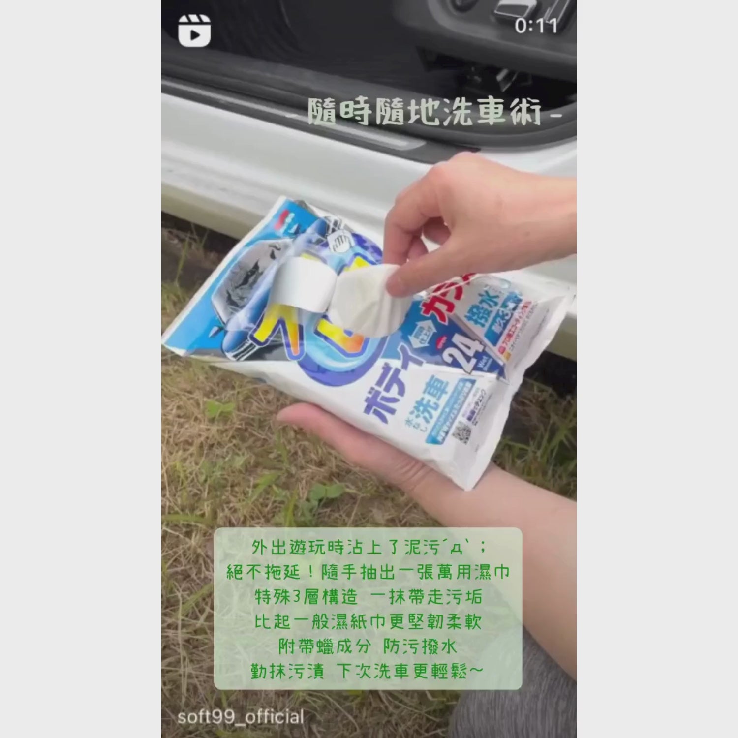 - 將濕巾對折 (約一張明信片大小),不施力的拂拭過車面,將髒污去掉擦乾淨即可。