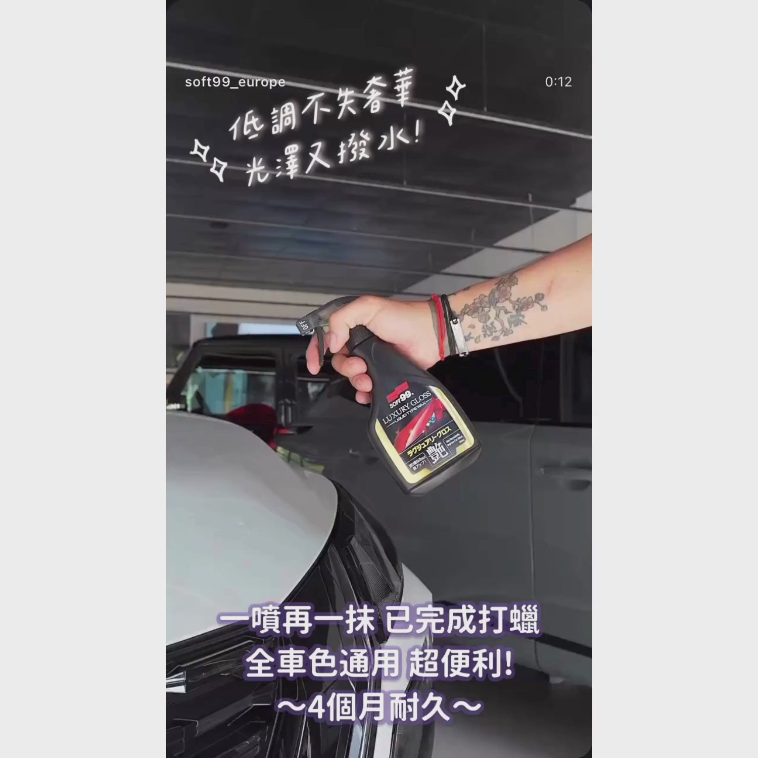 約四個月。*根據SOFT99 測試結果,實際效果可能會因車輛的存放狀況和噴蠟鍍膜狀態而異。