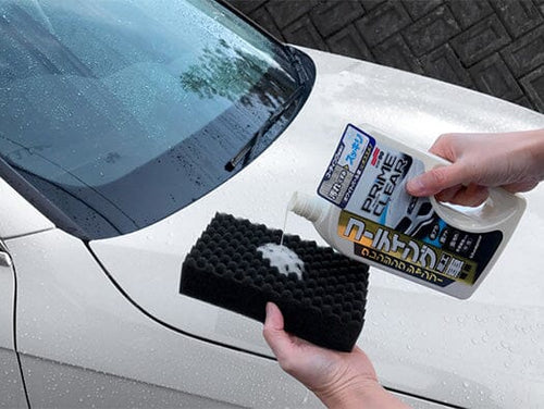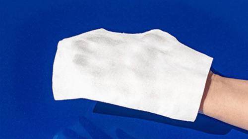 - 將不須研磨的地方遮蓋保護好。並且請先找尋是否有過於明顯深的傷痕,若有的話,請先用比超鏡面研磨劑再粗一點的研磨劑(另售)用附贈的藍黑色研磨專用海綿,先將明顯的傷痕去除後,再使用超鏡面研磨劑。