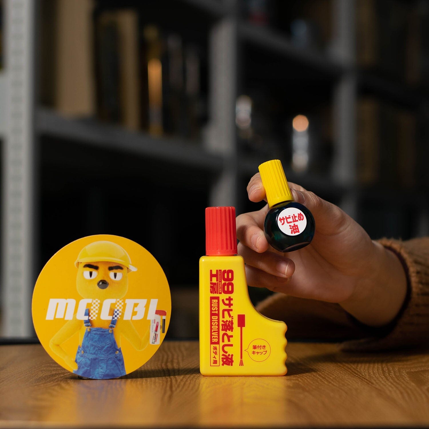 - 銹漬完全去除後,立即塗上附帶的防銹油或塗上油漆。注意油漆和防銹油不可同時使用。